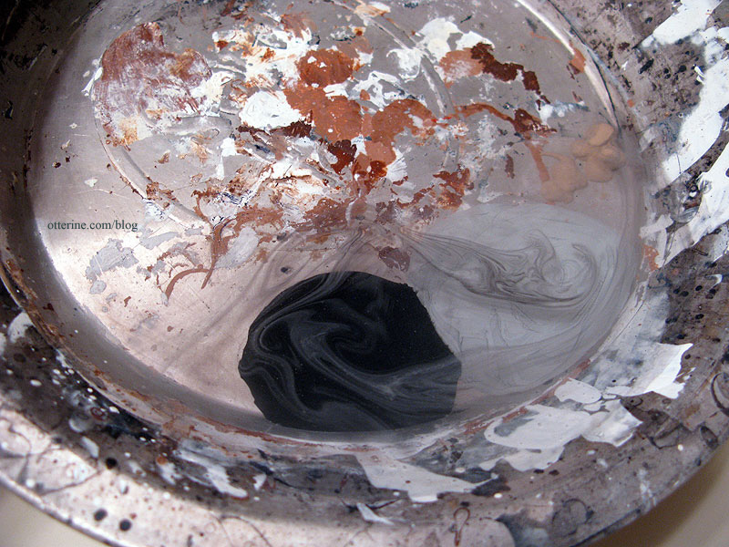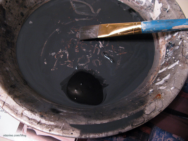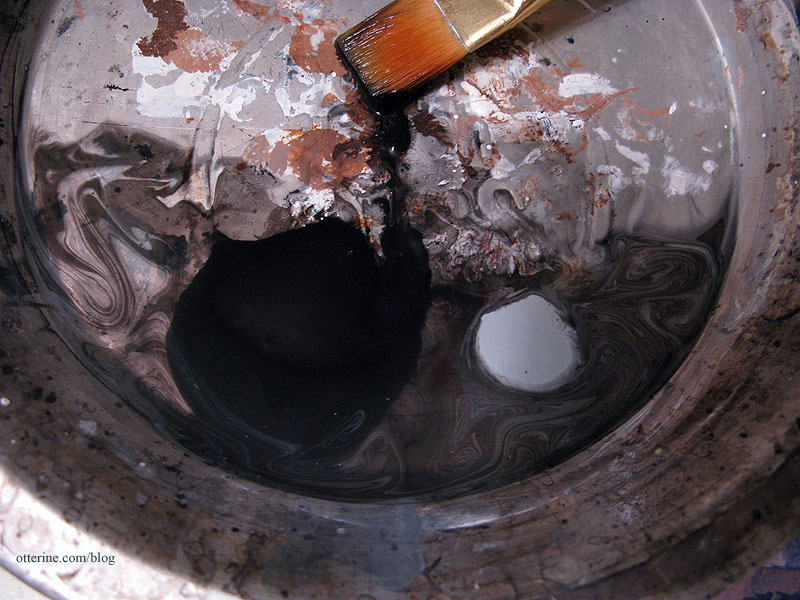 There were still some reddish places, so I opted for a third wash. I dumped out most of the liquid from the second wash and added more black paint.