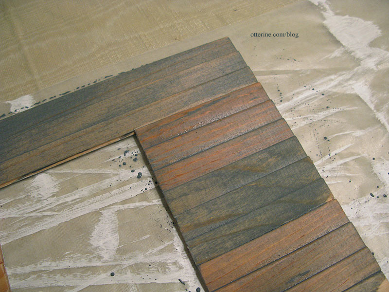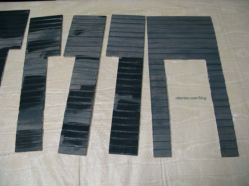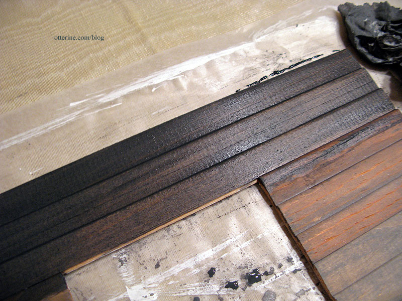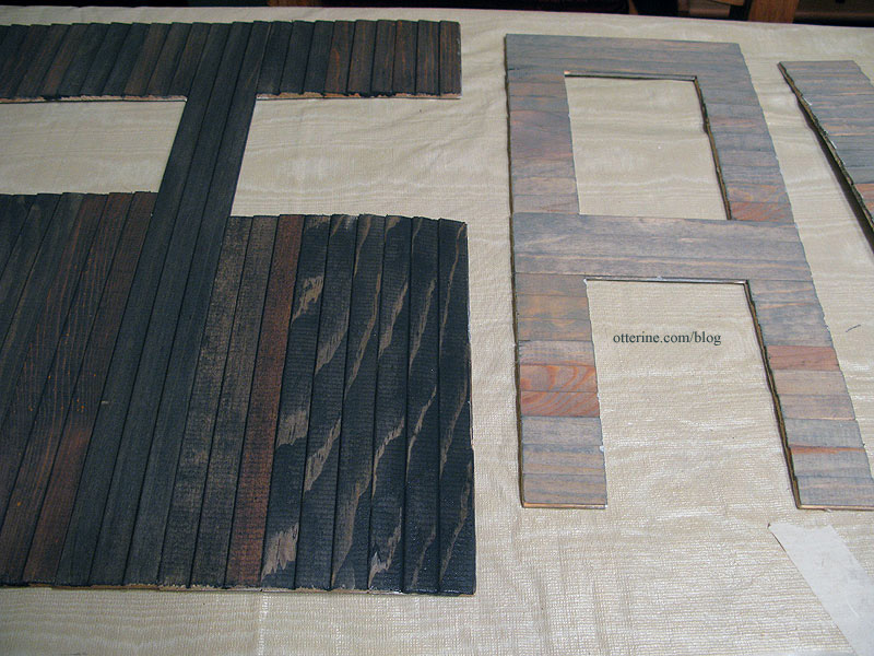 Once the wood was the appropriate color, I let the pieces dry for about half an hour before covering with wax paper and pressing flat with magazines to dry overnight.