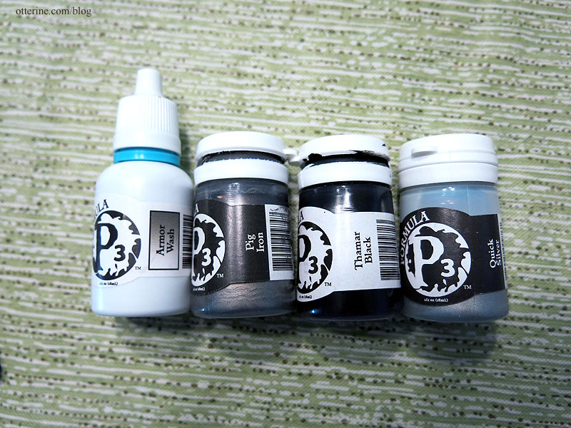 The metallic sheen of the Pig Iron is really nice, and the Armor Wash just darkens it a bit without removing the metallic sheen. Here you can see the difference from the plain dyed plastic to the aged metal.