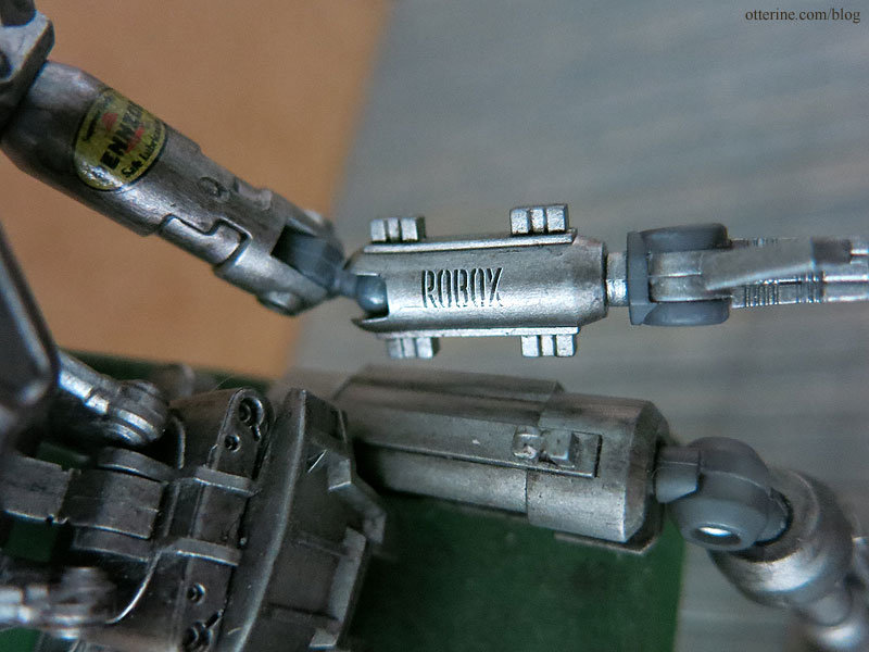 I used one of the Robox decals on the forearm, a number 8 on the chest and the Pennzoil on the bicep.