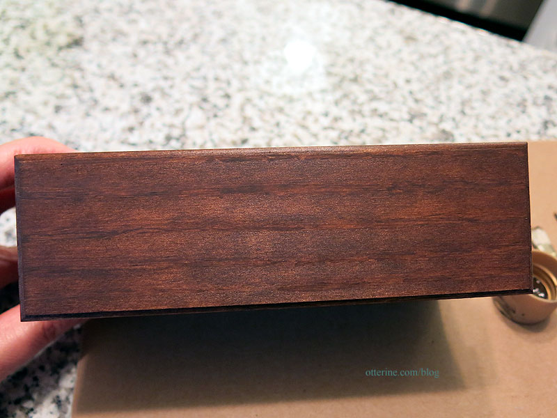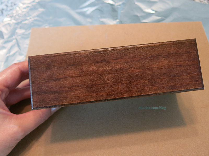 I also cut pieces of parchment paper for the interior and glued them in place with the same mucilage and varnish layer. I used a tiny bit of Antiquing Medium to age the crevices and give some depth to the piece. By varnishing the paper first, I could wipe away excess without marring the paper or over-staining it.