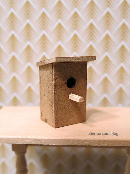 I painted the birdhouse green, but then I thought, “Why is just about every birdhouse I make green? I’m sure birds like other colors.” So, I painted over that with Battleship and painted the roof Bittersweet Chocolate, both by Americana. Now it’s a house suited for the unassuming bird who doesn’t like to draw attention. :D
