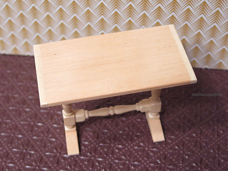 I re-purposed two House of Miniatures kits for Clyde and Sam — a bookstand and pedestal desk. I’ve kept the tops for other uses.