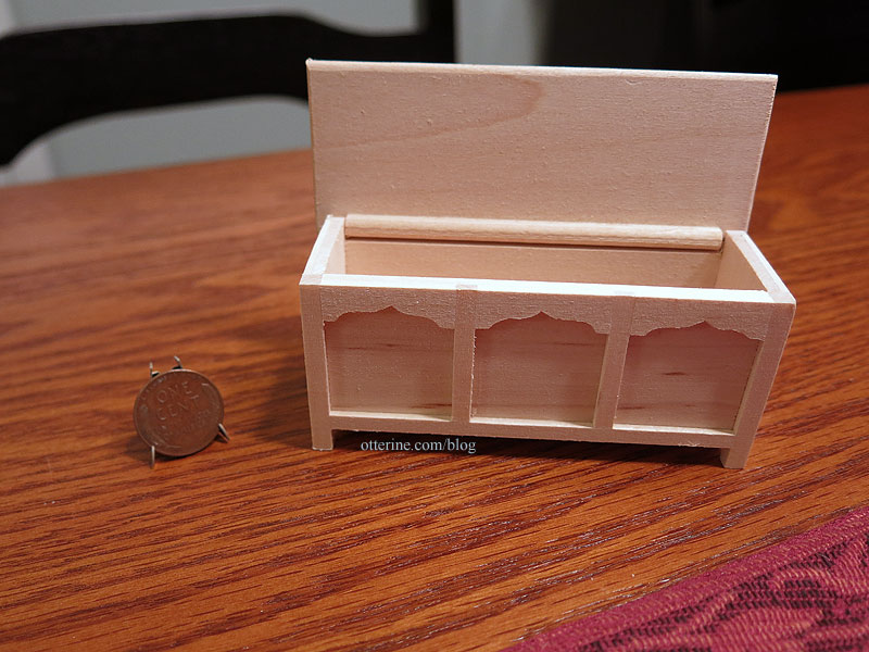The fine folks at Minimum World Dolls House Furniture Ltd contacted me about doing a feature on their unfinished furnishings and sent me a bare wood blanket chest free to try.