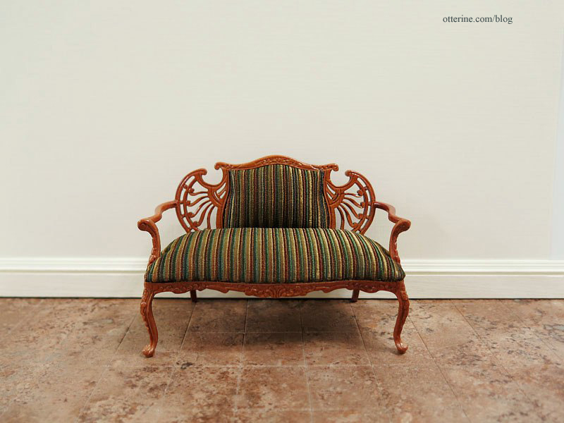 I don’t know why I like miniature settees so much. There are more on my wish list. Maybe because they can be so impractical in real life, but in mini I can have as many as I choose. Looks like I might have to build a miniature store and call it Brae’s Settee Emporium. :D