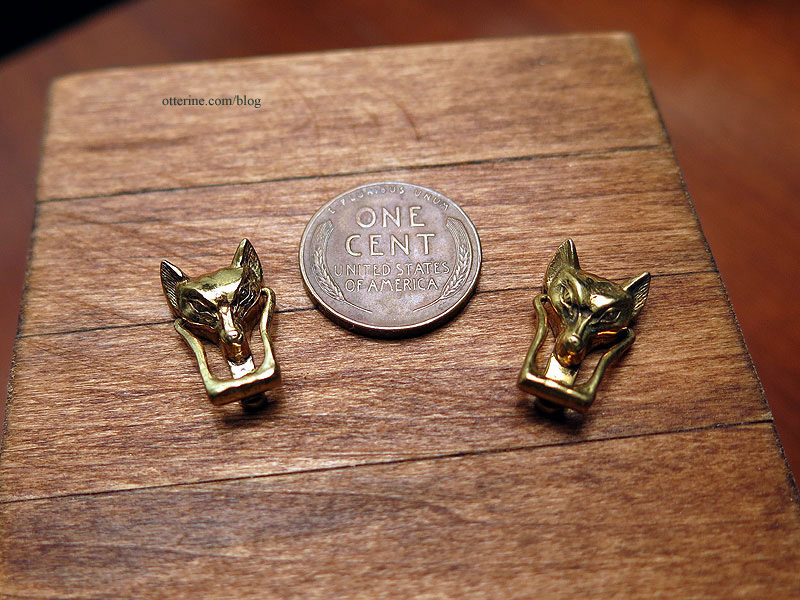 First, the item up is the one I couldn’t show you the other night. Two fox doorknockers in brass from Ron Stetkewicz Miniatures.