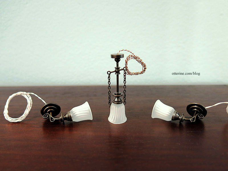 The tiny finials screw on to keep the shades in place.