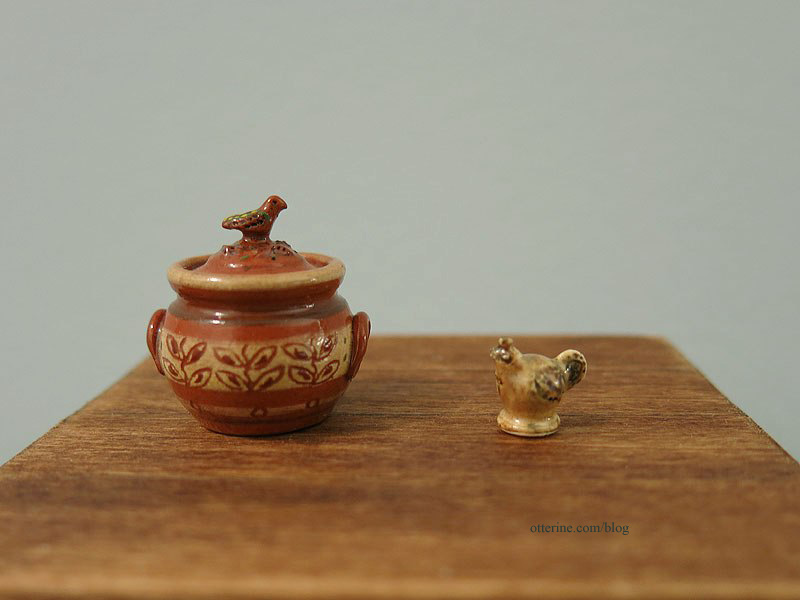 I’ve added a few new minis to my collection. The first is a wonderful honey pot with dipper by David Provan.