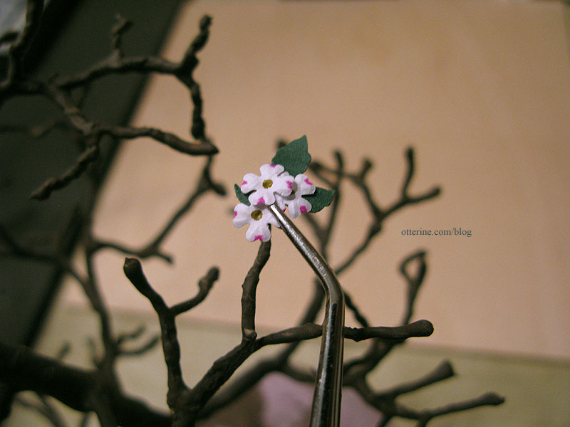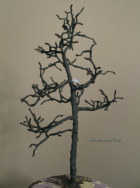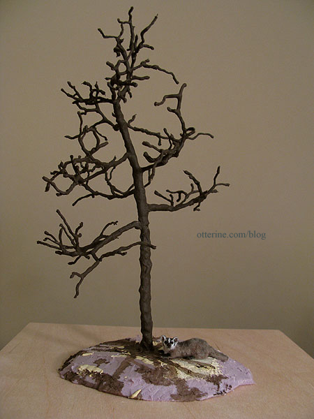 I used a small length of wire glued into the bottom of the post to hold it in place in the builders foam base. Uh, oh! Looks like a kitty has wandered over and spotted the birdie! :O