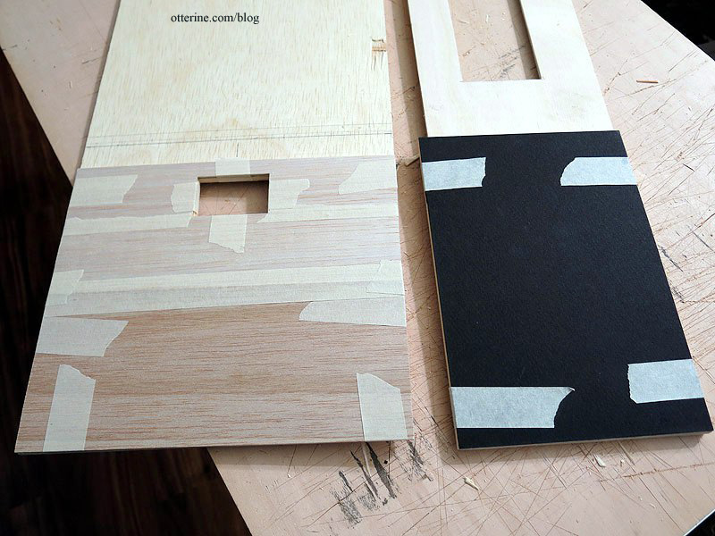 I glued the interior window trim/padding pieces in place. This creates a solid, smooth surface for finishing later on in the build. :] I used toothpicks wedged into the corners to hold the boards in place while the glue dried.