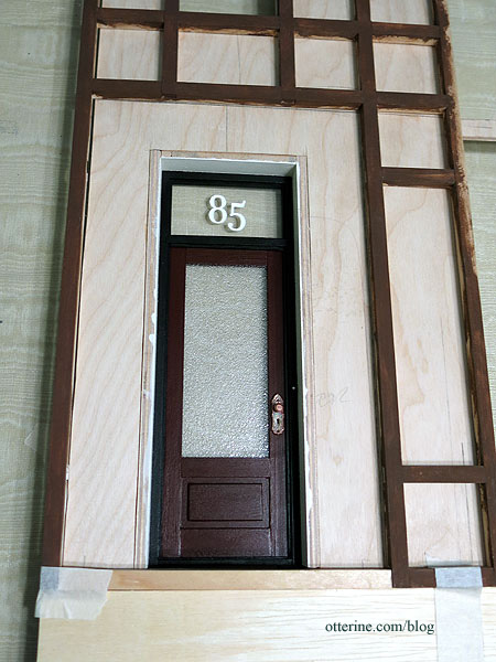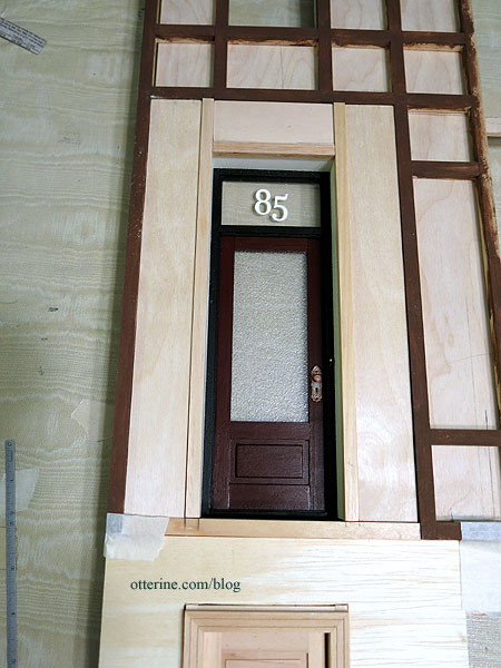 I used the kit door but built the custom frame to get the door to function, adding a transom window in the process. Why 85 as the house number? I was trying to think of some historical figure to serve an inspiration, and Edgar Allen Poe popped into my head. I found this article on one of his residences at 85 West Third Street in Greenwich Village, so 85 it was! :D