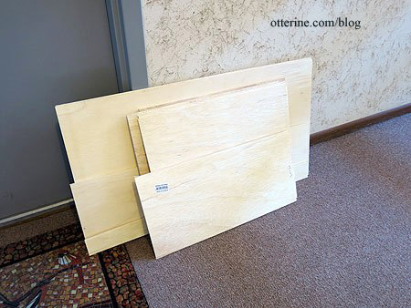 Since I have limited space for power tools and needed a lot of boards cut, I went to Home Depot. Their 1/4″ plywood is actually 3/16″ plywood, but it all worked out in the end. The saw at Home Depot will not get you precise, square cuts, but it will get you close. Bringing in the boards….