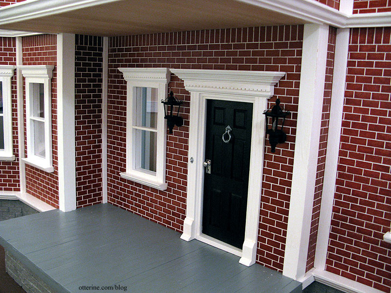 The brick on the Newport is a finish the manufacturer completes before shipping the kit. If it’s marred, there isn’t a way to fix it. And, there’s no way to replicate it, either. The photo of the front porch below shows how the front of the house is recessed by the front porch window.