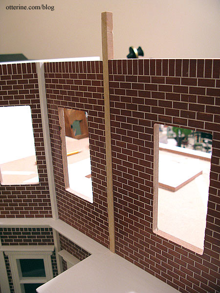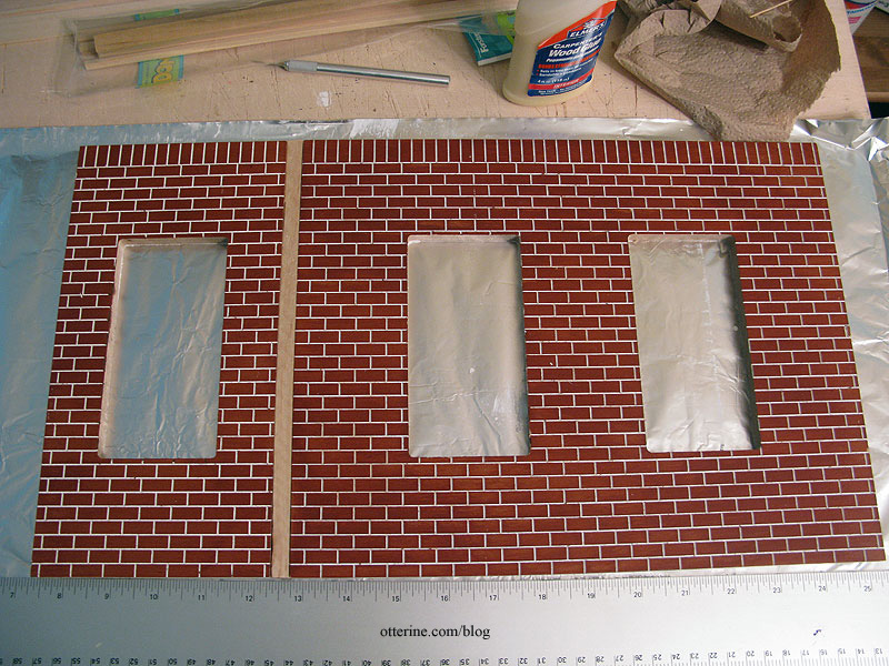The rub is that the walls are pre-cut with the brick finish. So, I couldn’t just glue the two pieces together since (1) the brick pattern wouldn’t match, (2) there was a gap between the two wall pieces since there was supposed to be room for the connectors that make the recess, and (3) the reason for the recess in the first place was to give the illusion of a tower running up the middle.