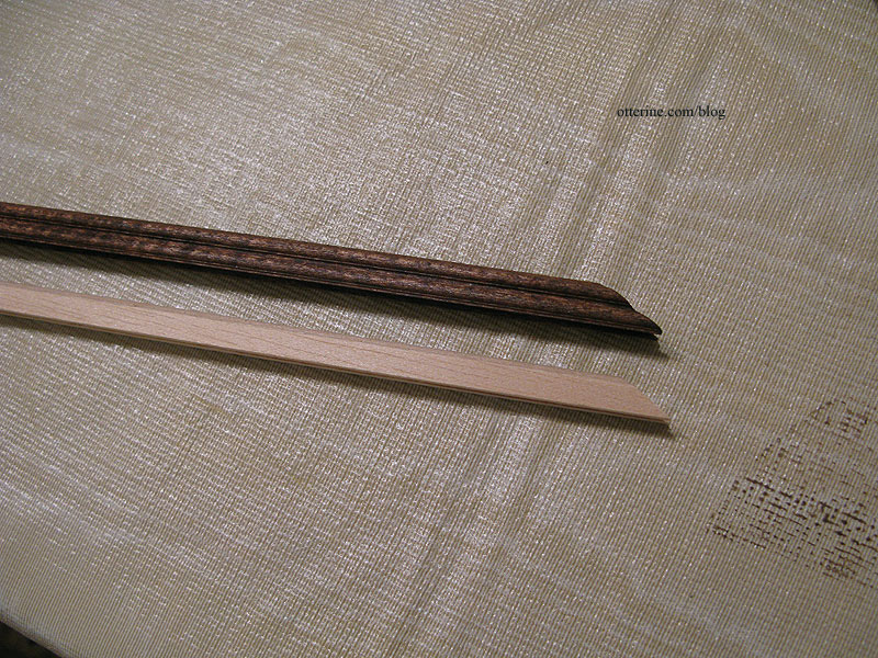 I bought replacement railing from Manchester Woodworks. This has a 3/16″ groove in the bottom, perfect for the tops of the spindles. I like the profile of this particular railing, too. It has a fancier look than the standard railing stock.