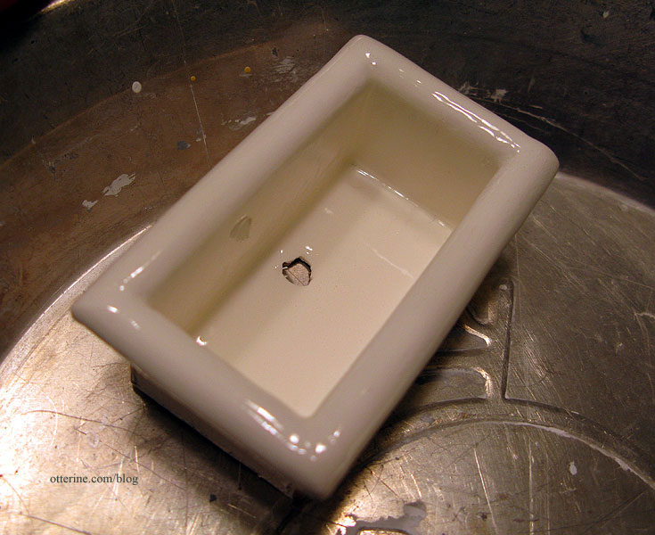 The finish turned out like porcelain again, though the glaze was definitely thick and not easy to use. You have to work fast because it dries so fast. I am pleased with the second sink but disappointed that the varnish I had used ruined the first.