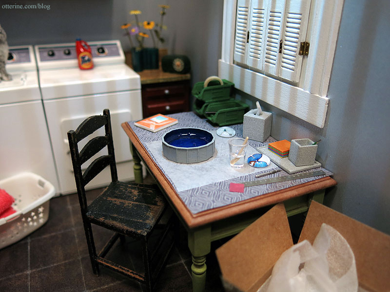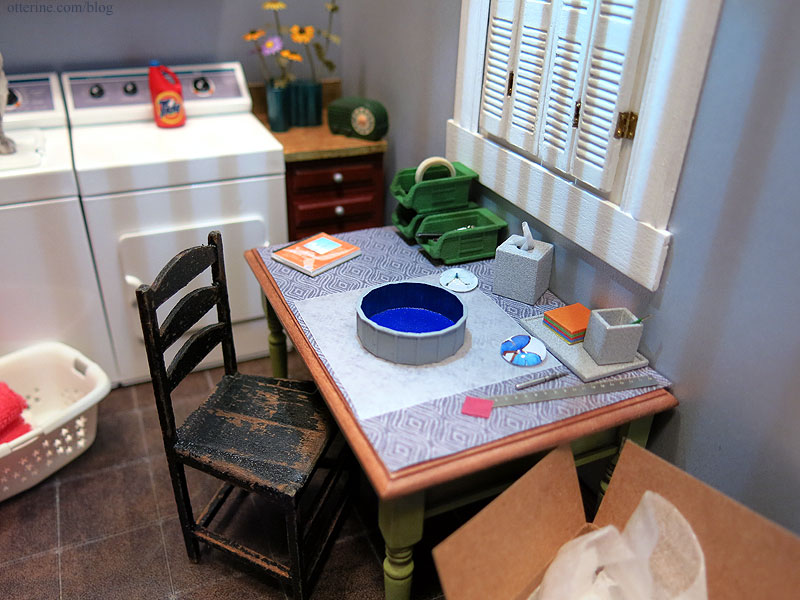 One recent and amazing development in the world of miniatures is 3D printing. Shapeways gives designers and shoppers a way to meet and mingle. There are so many custom miniatures in different sizes and materials available. Shapeways held a contest featuring miniatures, and I made a mini crafting scene to enter.