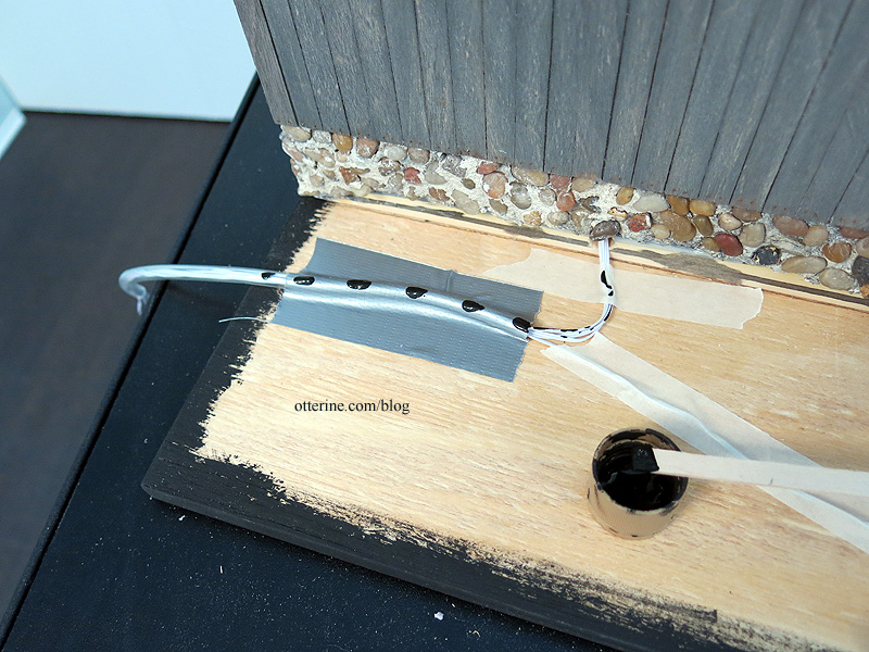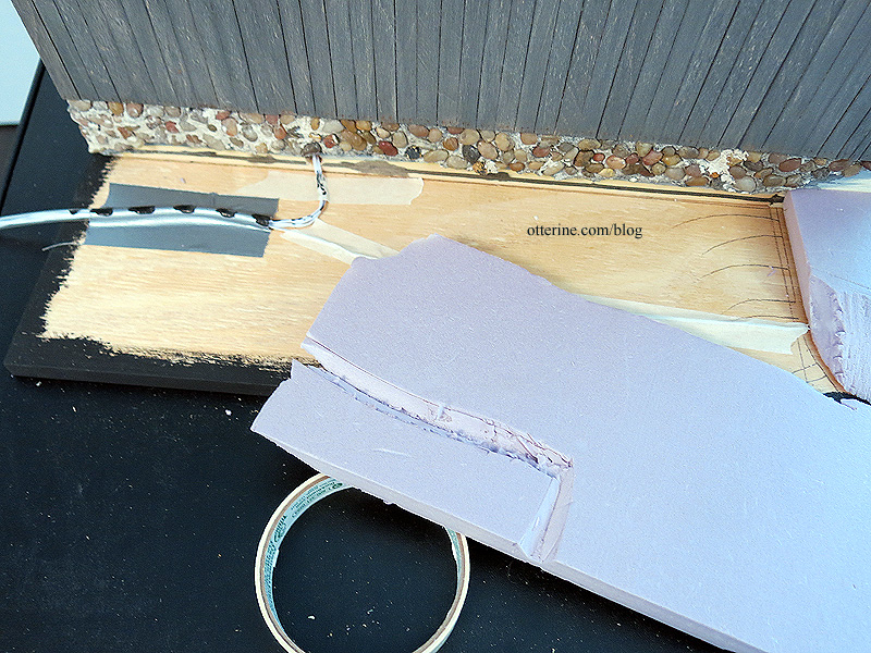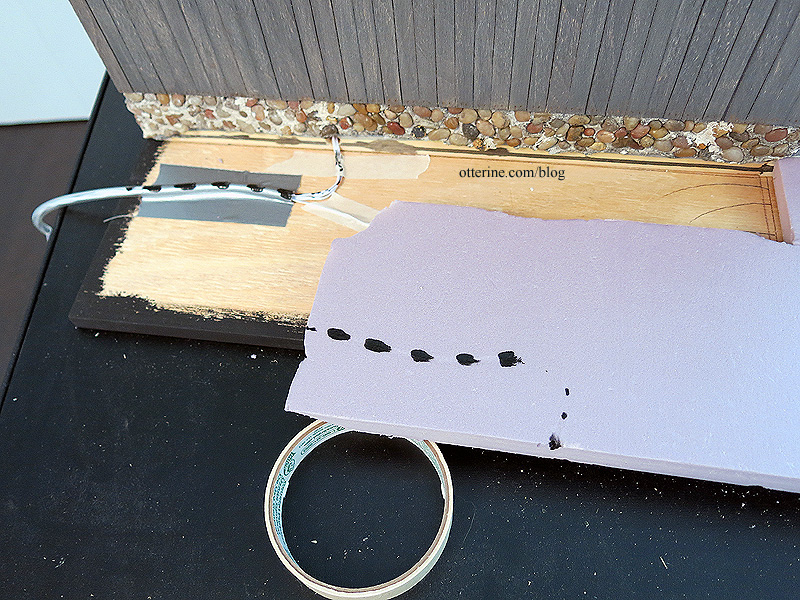 I did need to make a channel in the foam for the tubing and wires going into the foundation. I dabbed black paint onto the tube and then pressed the foam over it.