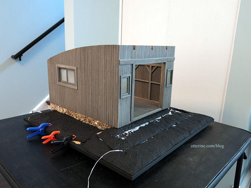 I painted the pieces with gesso. I had left the pieces closest to the building removable since I didn’t want to risk getting gesso or paint on the foundation.