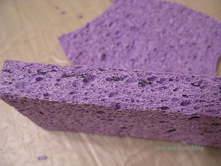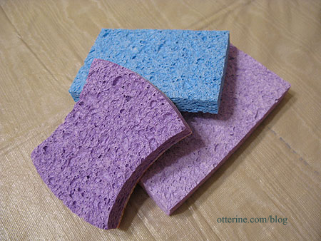 I bought cellulose sponges in different shapes and sizes at Target. I had to leave them out on the counter for a few days to let them dry out. In the process of drying, they shrank a bit so I was glad I hadn’t used right them out of the package.