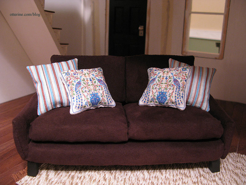 Thank you, Susan! I just made it up as I went, using the real life sofa as inspiration and utilizing the sponge shapes to achieve the look.