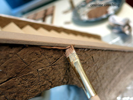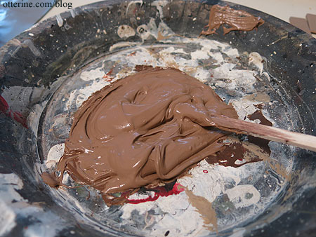 I made a mixture of spackling, Weldbond glue and brown paint. Yum, pudding! :D