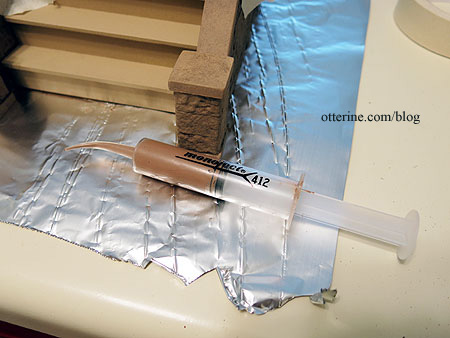 I slathered this onto the side walls and then pressed the pedestals in place.
