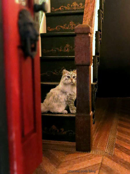 The entryway and upstairs hallway are relatively small and minimally decorated, but I thought they deserved their own post. First up is the elegant entryway. It’s a small area but there is just enough room for some fancy miniatures.