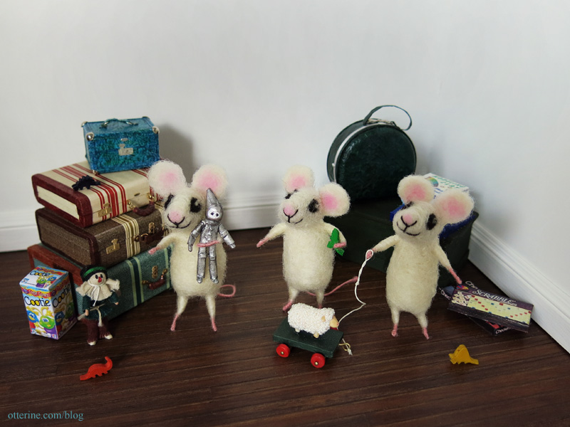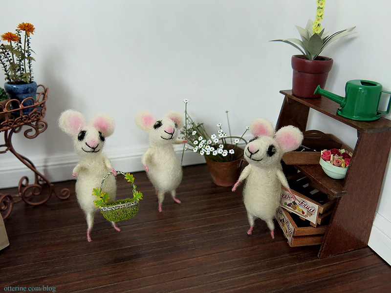 A group of friends went in together and sent me the most adorable trio of mice for my birthday (from CozyMilArt). These three wee sisters are Daisy, Poppy and Fleur. While they each have their own personality and vary in looks, I still might have to make bracelets for them so I can keep them straight.
