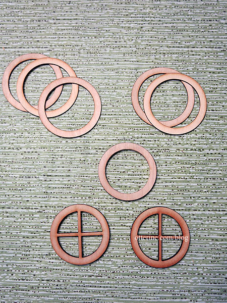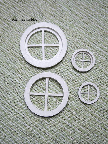 For the 1 1/8″ Simplicity Window from Heritage Laser Works, a little more work will be involved since the pieces aren’t as thick. But, to start, as with the larger round window, I glued four of the outer trim pieces together to make the exterior trim piece then glued the two remaining outer trim pieces together to make the interior trim piece.